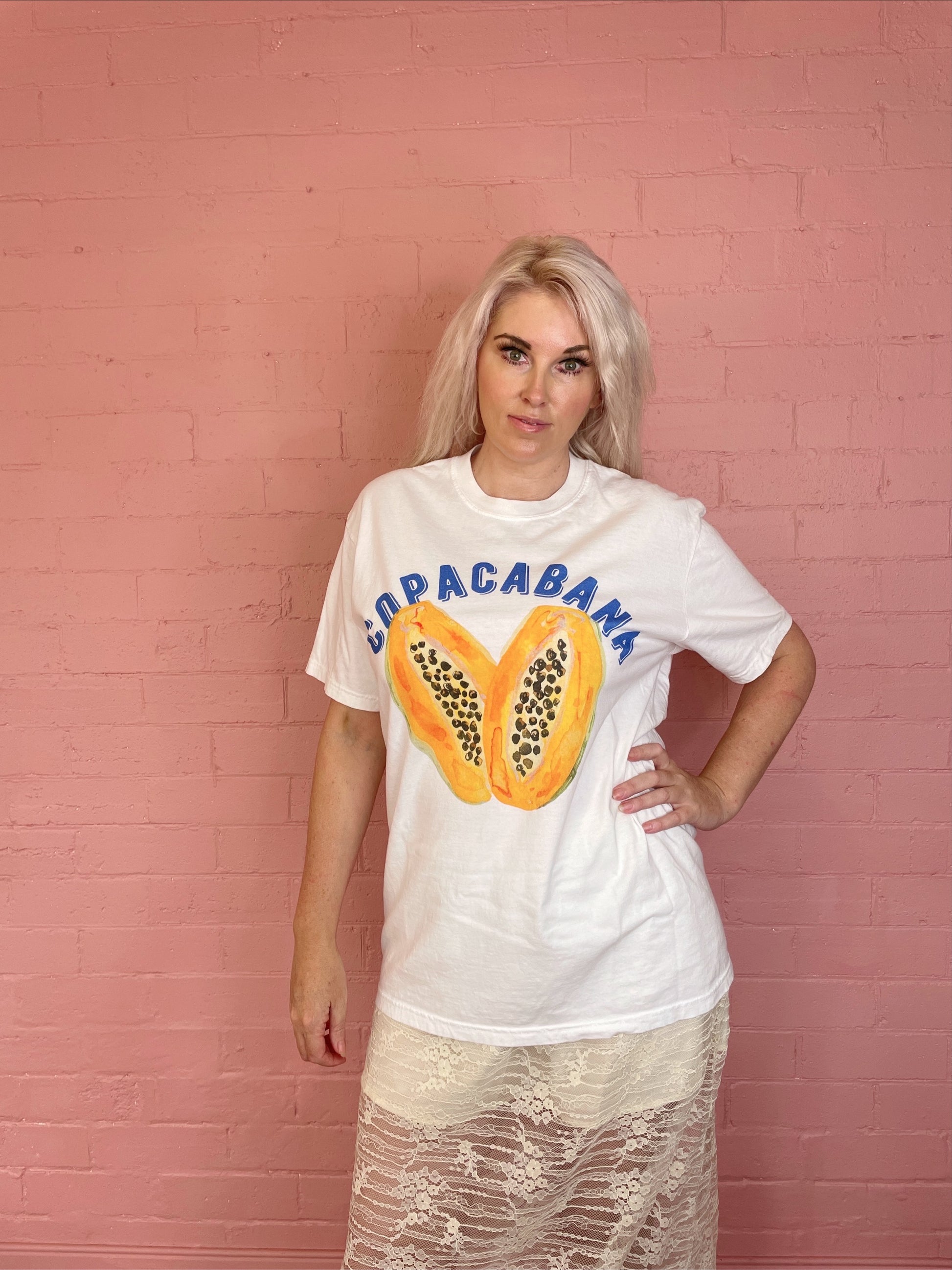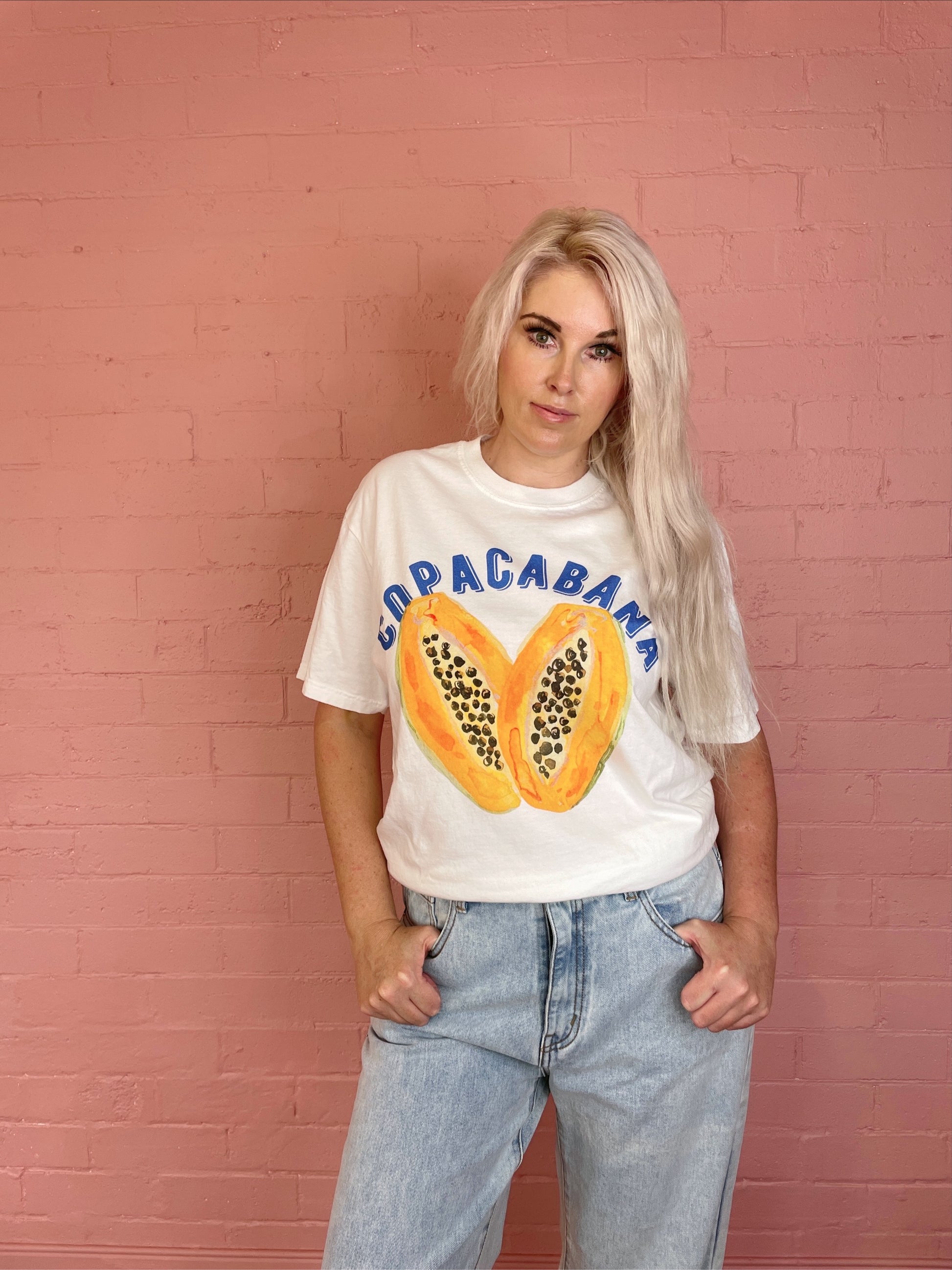 Sun, fruit, and effortless style— the COPACABANA Oversized Tee captures the vibrant energy of beachside days and carefree nights. Featuring a hand-painted illustration that blends movement and bold colors, this piece is all about feeling free and embracing the moment.
