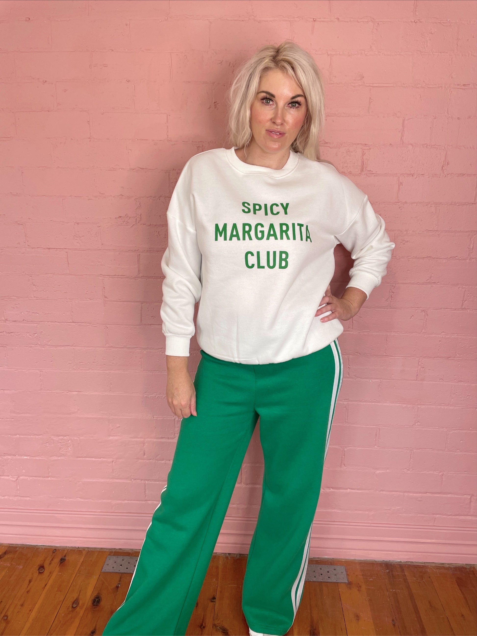 Our Racer Pants are bold green fleece tracksuit pant with a striking white stripe down the leg. Her ultra relaxed fit + straight leg offer maximum comfort. Our  Pants are a stylish yet practical addition to your casual  wardrobe.