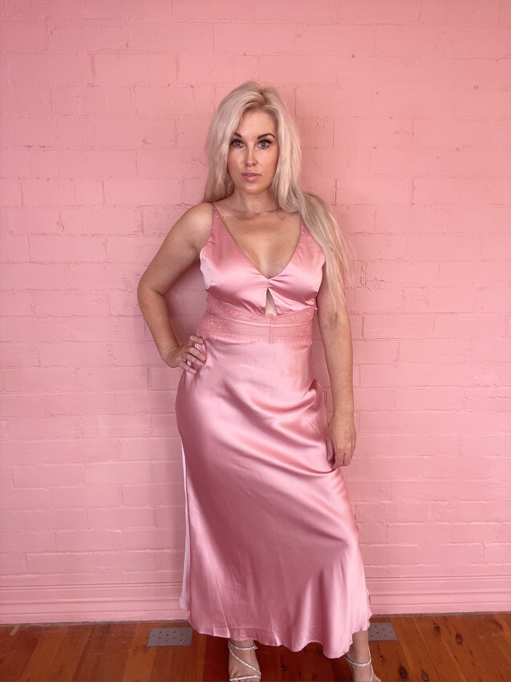 Make a statement in our Better Believe maxi dress. It's perfect for a romantic date night with your lover or a special event. We are in love with the lace detail and high split in the front! Team it with nude heels and a clutch for an unforgettable look.
