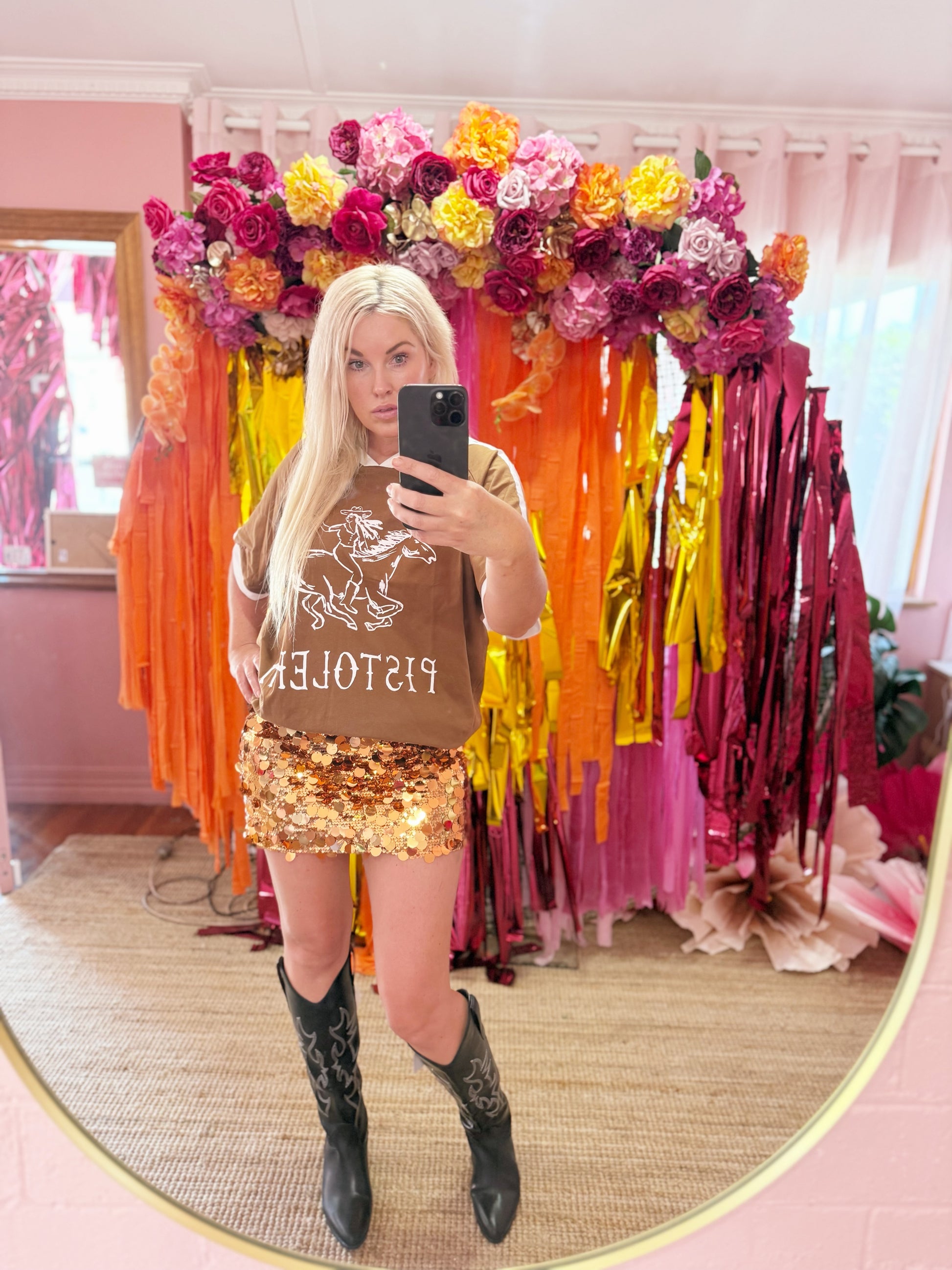 Bold, untamed, and effortlessly cool — The Pistolera Tee celebrates the spirit of the modern muse with a wild streak.